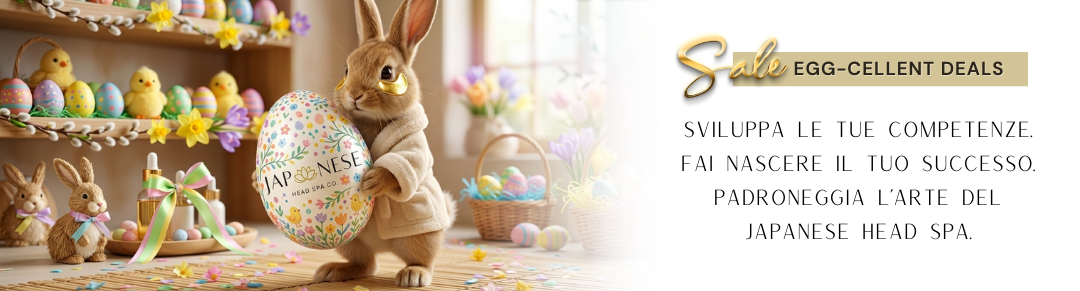 Dai slancio al tuo successo questa Pasqua con i nostri pacchetti All-in-One Japanese Head Spa, pronti all’uso e completi di tutto il necessario per offrire trattamenti professionali di Japanese Head Spa. Perfetti per saloni, spa, terapisti mobili e appassionati di hair care di lusso.